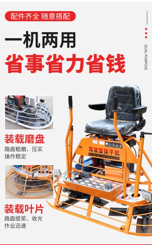主要針對大面積水泥地坪和型超平地面的施工,相比手扶式抹平機其施工工效和施工明顯.加強型的變速箱和離合器大大了機器的可靠性.使得操作簡單,快速。