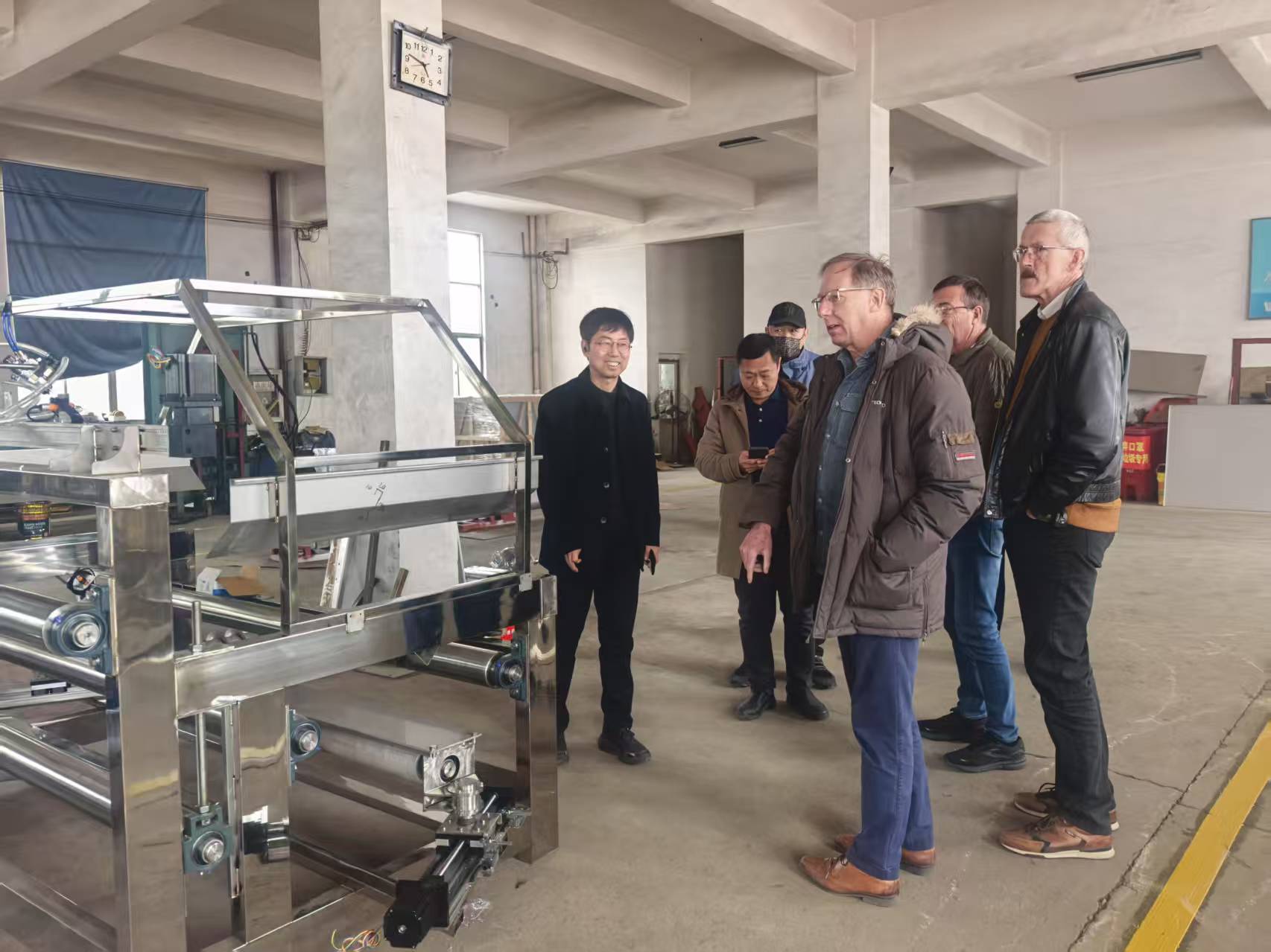 參觀結(jié)束后,公司負(fù)責(zé)人與客戶進(jìn)行了深入的交流。他詳細(xì)介紹了目前的發(fā)展?fàn)顩r,以及設(shè)備在技術(shù)改進(jìn)、銷售案例等方面的突出成績??蛻魧ξ宜镜膶?shí)力和發(fā)展?jié)摿Ρ硎玖烁叨鹊恼J(rèn)可,并對未來的合作充滿了期待。