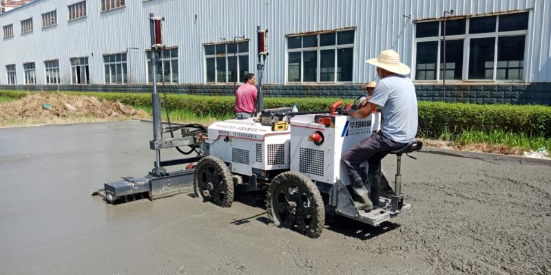 混凝土激光整平機(jī)在運(yùn)行前需要準(zhǔn)備的工作。在基層處理好后,對激光整平機(jī)進(jìn)行設(shè)備調(diào)試,根據(jù)原始水準(zhǔn)點(diǎn)引做固定基準(zhǔn)水準(zhǔn)點(diǎn);鋪設(shè)塑料薄膜,綁扎鋼筋網(wǎng)(根據(jù)設(shè)計(jì)需要),支設(shè)邊模;架設(shè)激光發(fā)射器,根據(jù)原始水準(zhǔn)點(diǎn)將地坪標(biāo)高引入激光整平機(jī)。