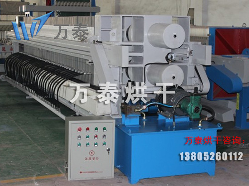 板框式壓濾脫水機是通過板框的擠壓,使污泥內(nèi)的水通過濾布排出,達到脫水的目的。它主要由凹人式濾板、框架、自動-氣動閉合系統(tǒng)側(cè)板懸掛系統(tǒng)、濾板震動系統(tǒng)、空氣壓縮裝置、濾布高壓沖洗裝置及機身一側(cè)光電保護裝置等構成。設備選型時,應考慮以下幾個方面: